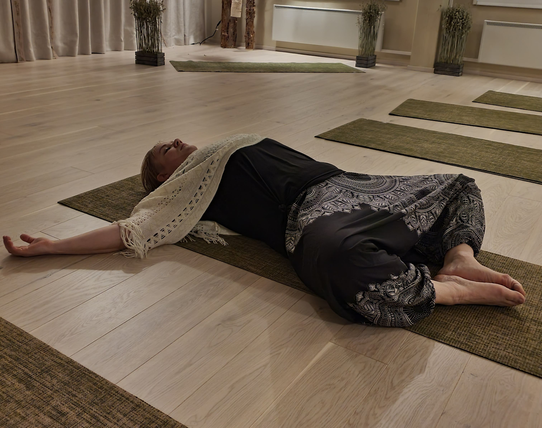 "Harmonia on nimensä mukaisesti harmoninen tila joogalle ja muille rauhallista ympäristöä vaativille harjoitteille. Itse käyn ilmajoogassa, jossa saan venyteltyä kehoni kohtia, joita en muuten onnistu venyttämään. Myös tunnin rauhallinen henki ja lopun rentoutushetki saavat mielen ja kehon rauhoittumaan." - Anna-Maija