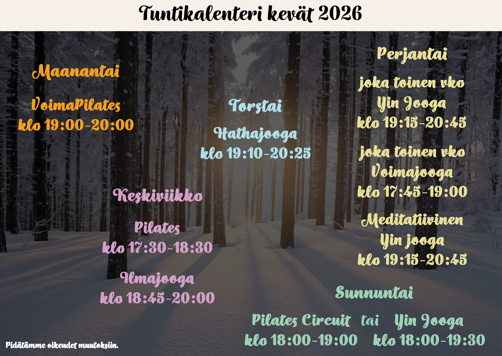 Hathajooga on rauhallisesti ja pehmeästi etenevä tunti, jossa liikkeet herättelevät kehon eri liikeratoja, voit kokea hengityksen itsessäsi ja sinulla on aikaa löytää sisäinen harmonia. Isompi osa tunnista tapahtuu lähellä lattianpintaa ja tunnin alku ja loppu antavat tilaa hengähtää ja rauhoittua. Tunti sopii kaikille, tähän harjoitukseen on helppo osallistua, vaikka sinulla ei olisi aiempaa kokemusta joogasta
