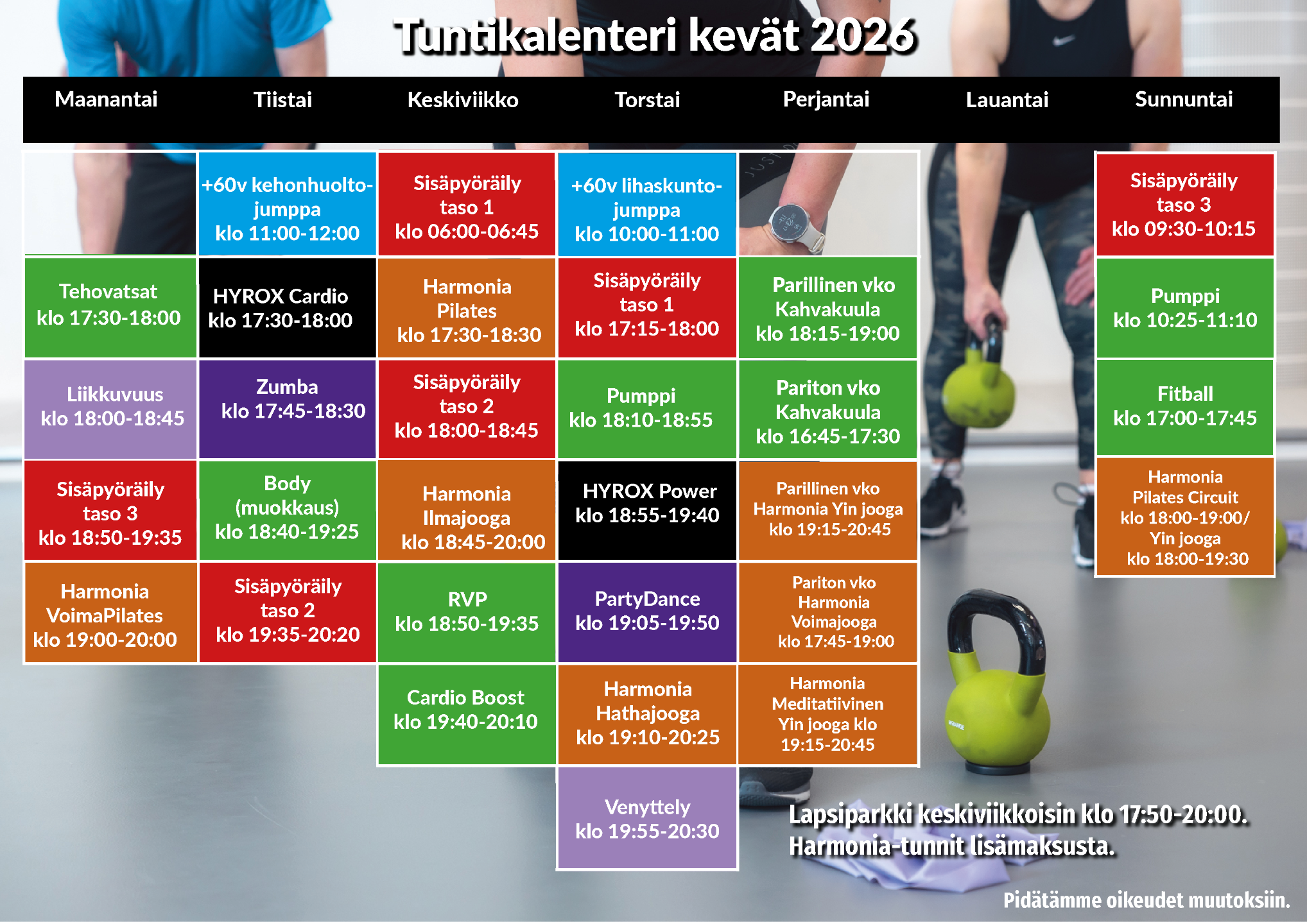 Pidätämme oikeudet muutoksiin. Harmonian joogatunnit eivät kuulu ryhmäliikuntajäsenyyteen.